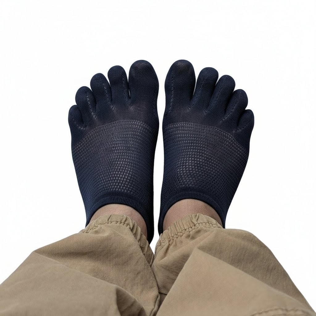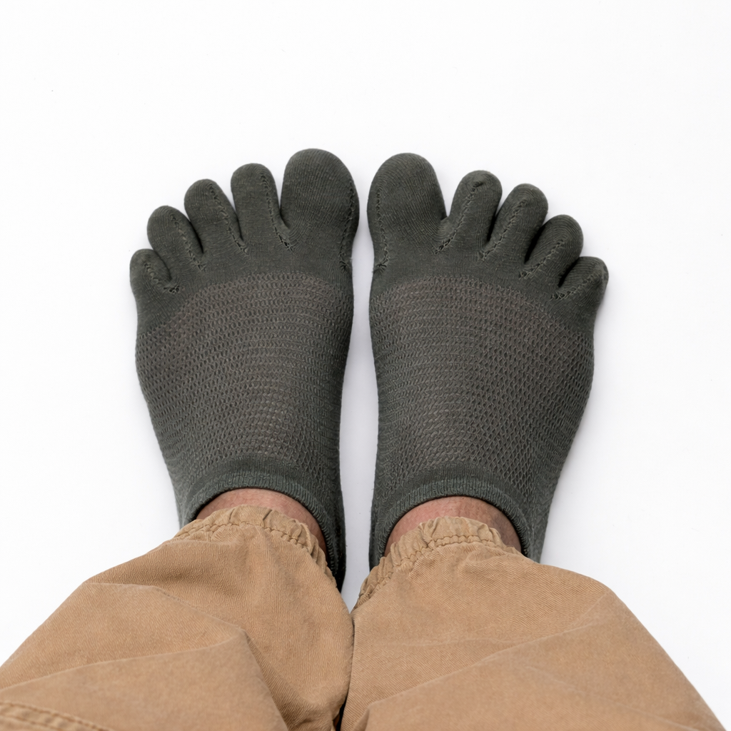 Gracias a su diseño con separación de dedos, estos calcetines mejoran la ventilación, reducen la fricción y permiten un movimiento más libre del pie. Son ideales para quienes buscan confort diario sin renunciar a un acabado discreto e invisible.